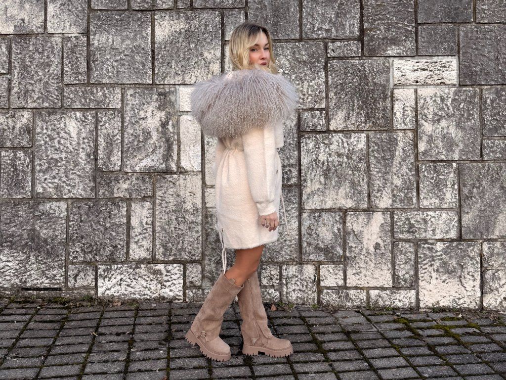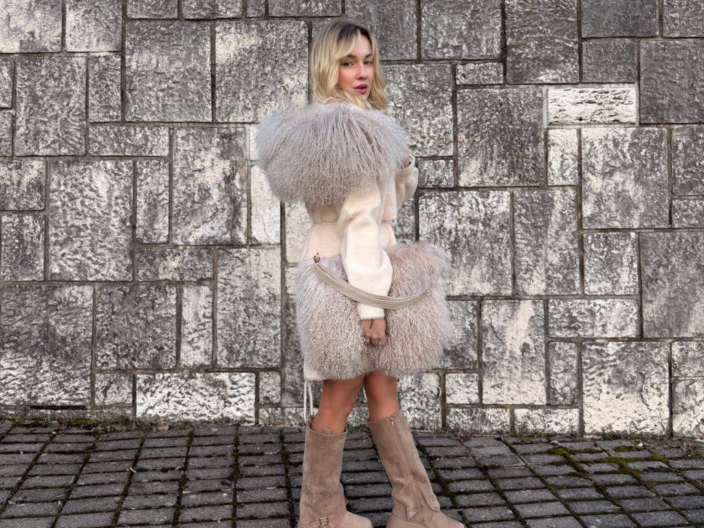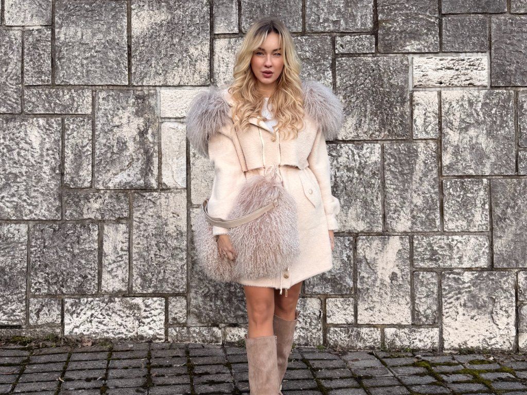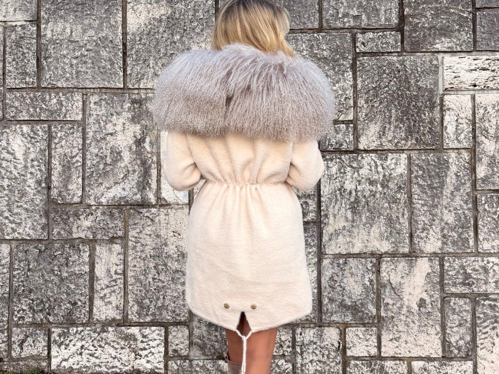 Ľahký, no zároveň hrejivý materiál z alpaky je ideálny na jar a jeseň. Dominantný lem z lamy dodáva modelu dramatický a luxusný charakter, ktorý okamžite upúta pozornosť.