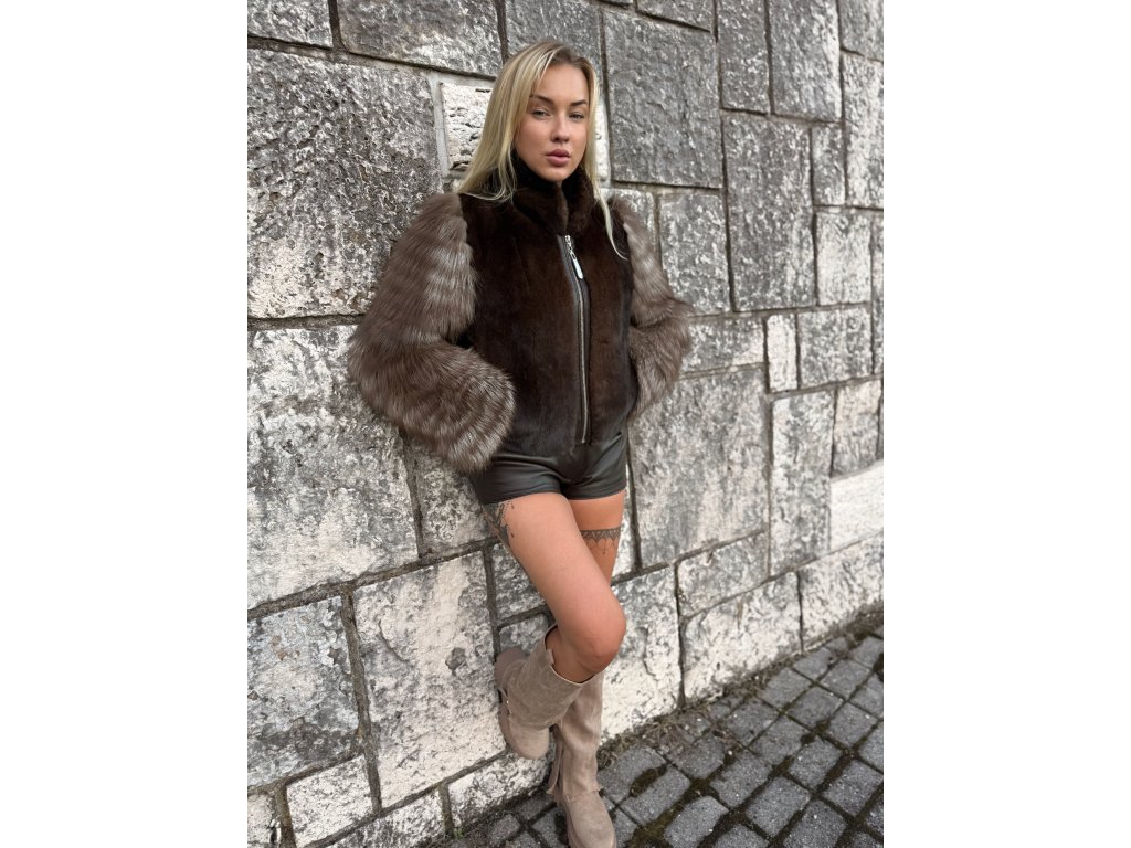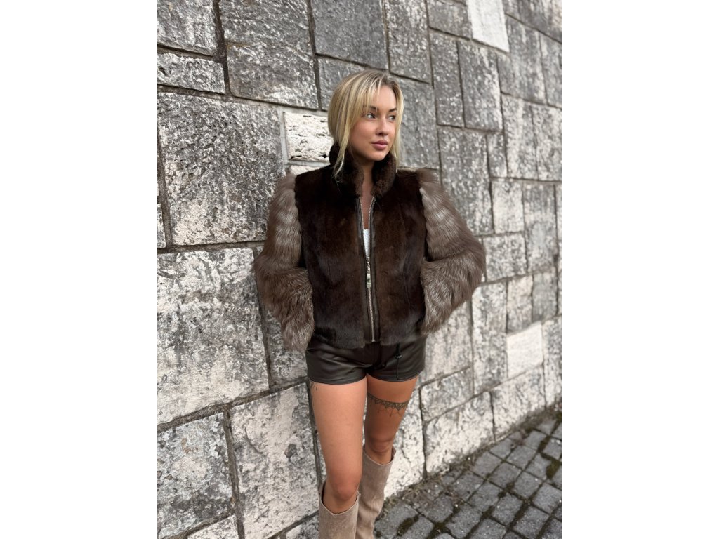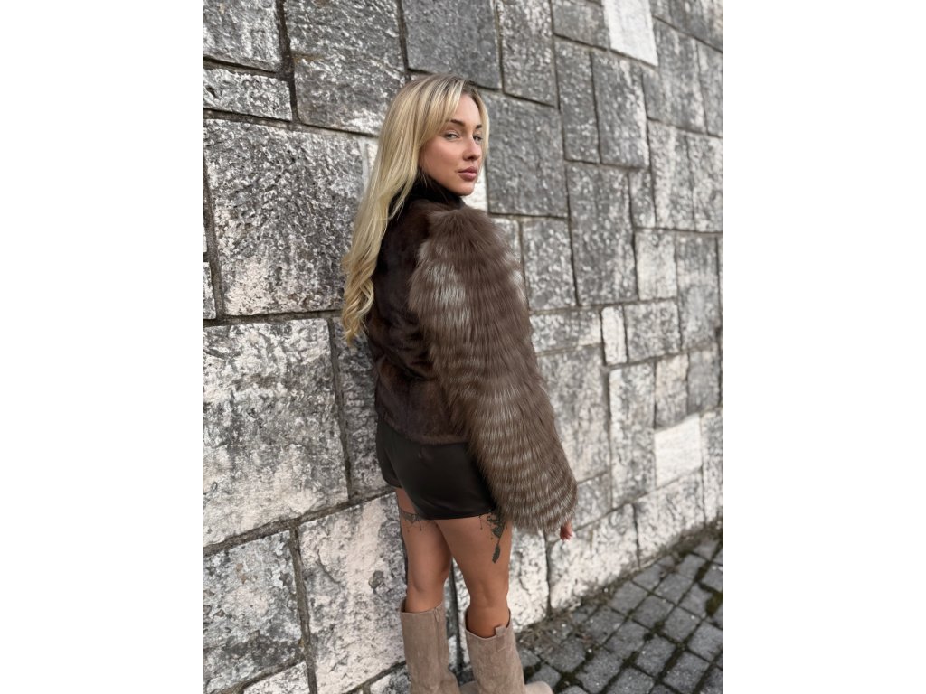 Farba: tmavohnedá norka, rukávy v prírodných odtieňoch hnedej líšky