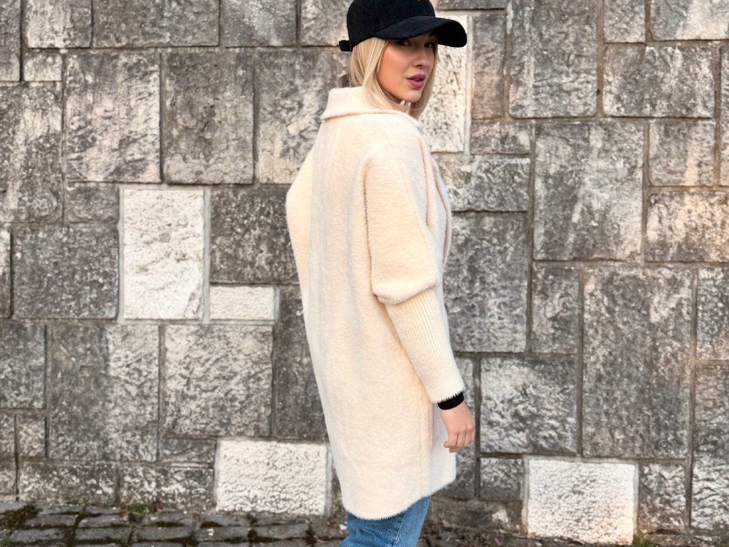 👉 Výsledok: teplý, mäkký a príjemný kabát vhodný na jeseň/Jar
