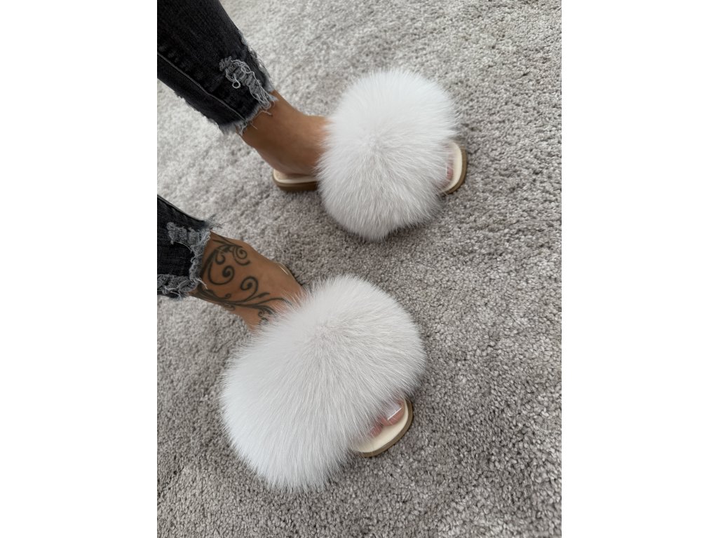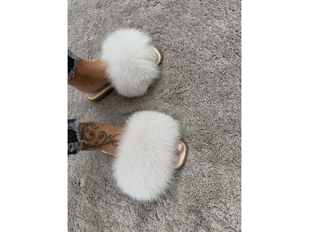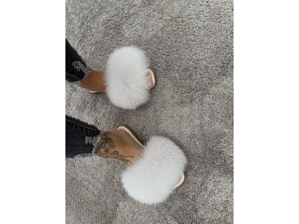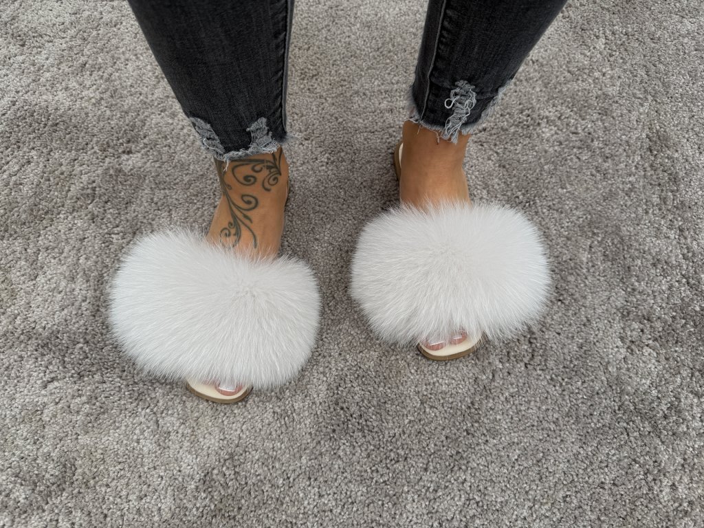 Názov produktu: Arctic Luxe Fox – luxusné kožené šľapky z bielej líšky