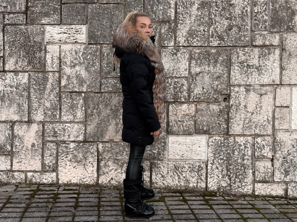 Charakteristika: Prémiová zimná bunda pre náročné ženy, ktoré vyžadujú kombináciu funkčnosti, elegancie a luxusu v jednom kúsku. 🖤❄️