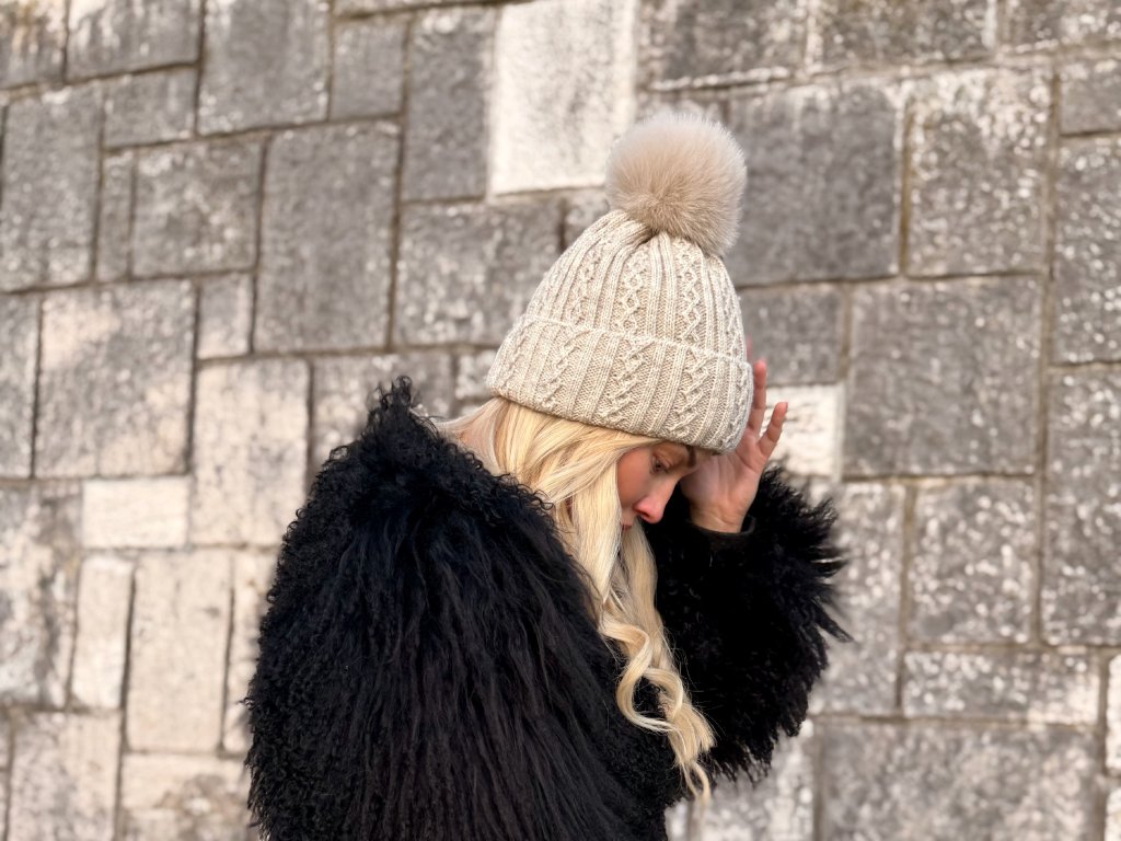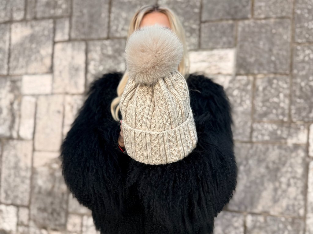 Elegantná vlnená čiapka s nadýchaným brmbolcom z prírodnej kožušiny. Jemná, hrejivá a univerzálna — dokonale doplní každý zimný outfit. Vďaka pružnému materiálu sa prispôsobí tvaru hlavy a zaručí pohodlné nosenie počas chladných dní.