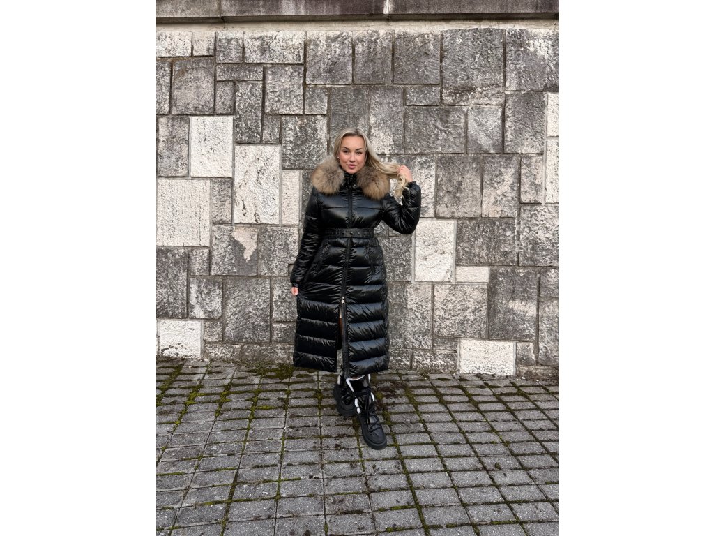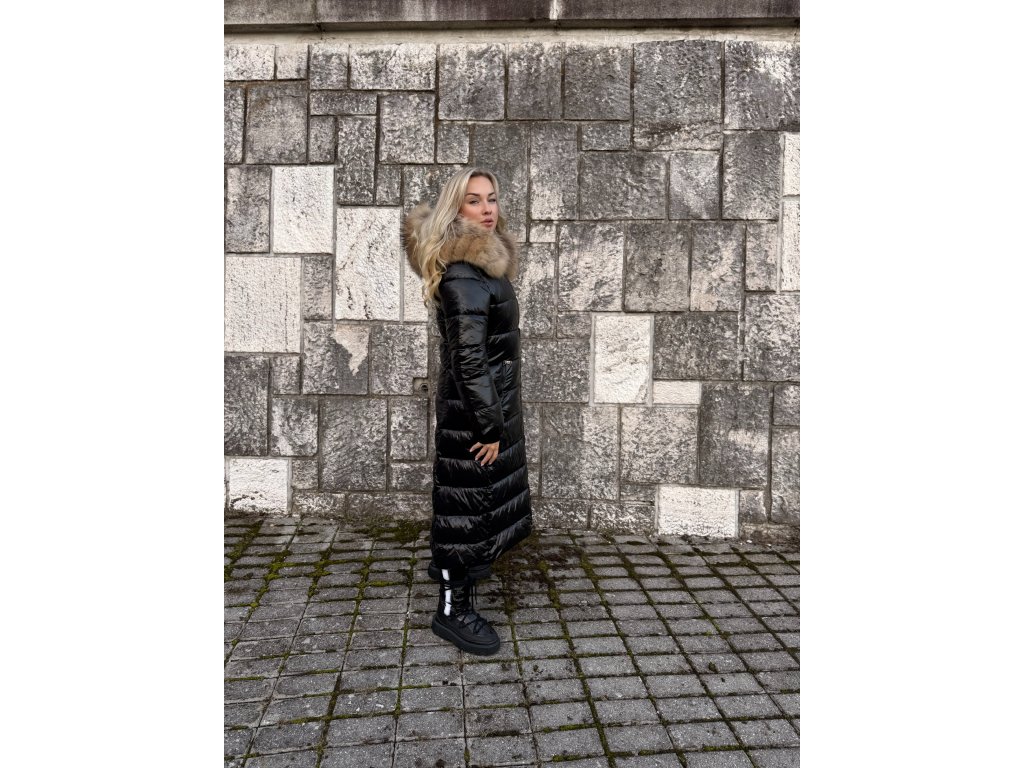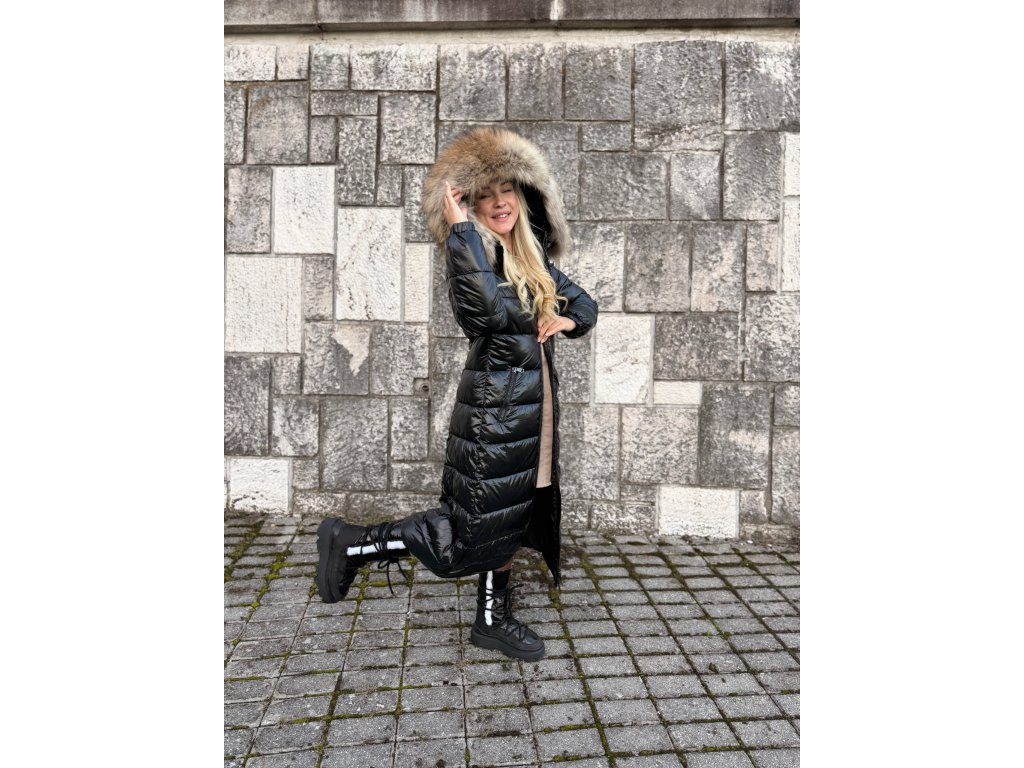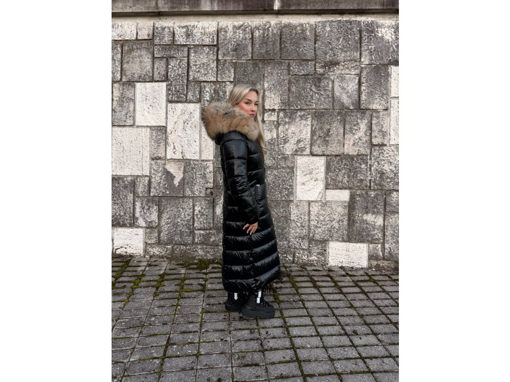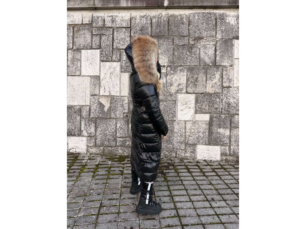 🖤 Dlhá lesklá vatovaná bunda s pravou kožušinou