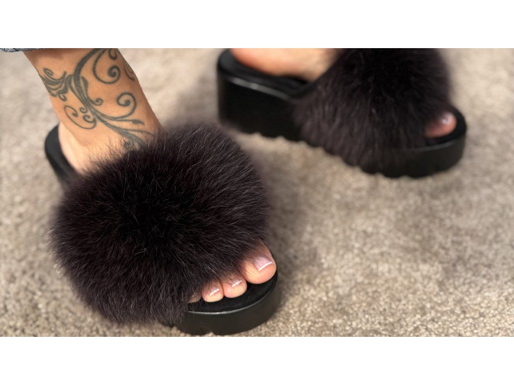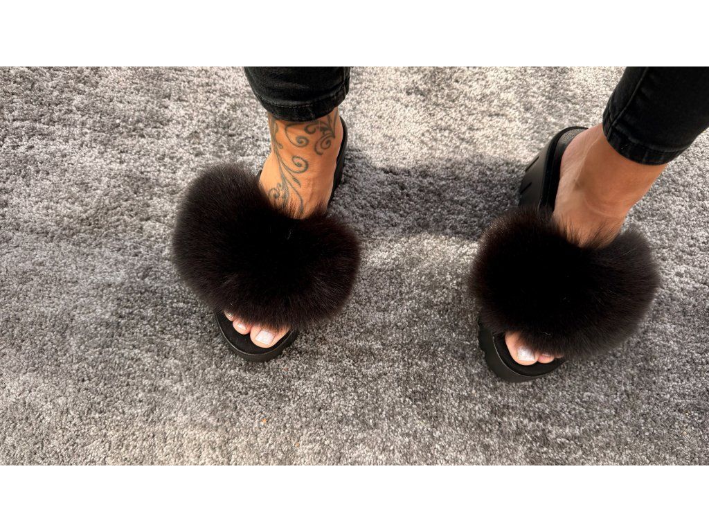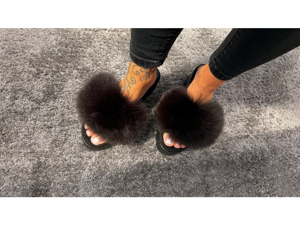 kožušinové šľapky na pohodlnej koženej platforme s krásnou kožušinou mokka líška