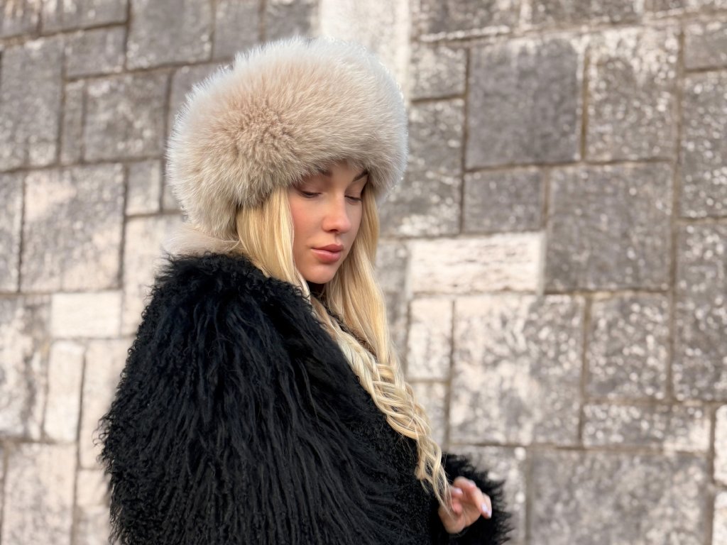 Luxusná kožušinová čelenka, ktorú možno nosiť dvomi spôsobmi – ako hrejivý doplnok na hlave alebo ako elegantný golier okolo krku. Vyrobená z kvalitnej prírodnej kožušiny, viaže sa na jemné kožené šnúrky zakončené brmbolcami z kožušiny.