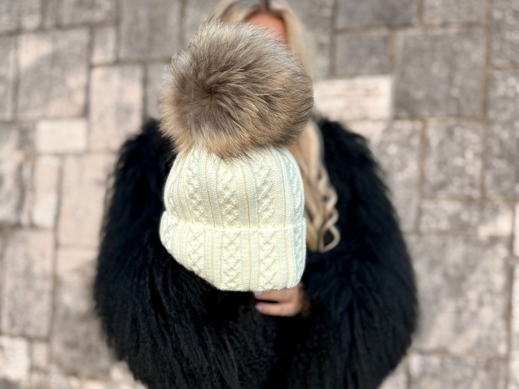 Elegantná vlnená čiapka s nadýchaným brmbolcom z prírodnej kožušiny. Jemná, hrejivá a univerzálna — dokonale doplní každý zimný outfit. Vďaka pružnému materiálu sa prispôsobí tvaru hlavy a zaručí pohodlné nosenie počas chladných dní.