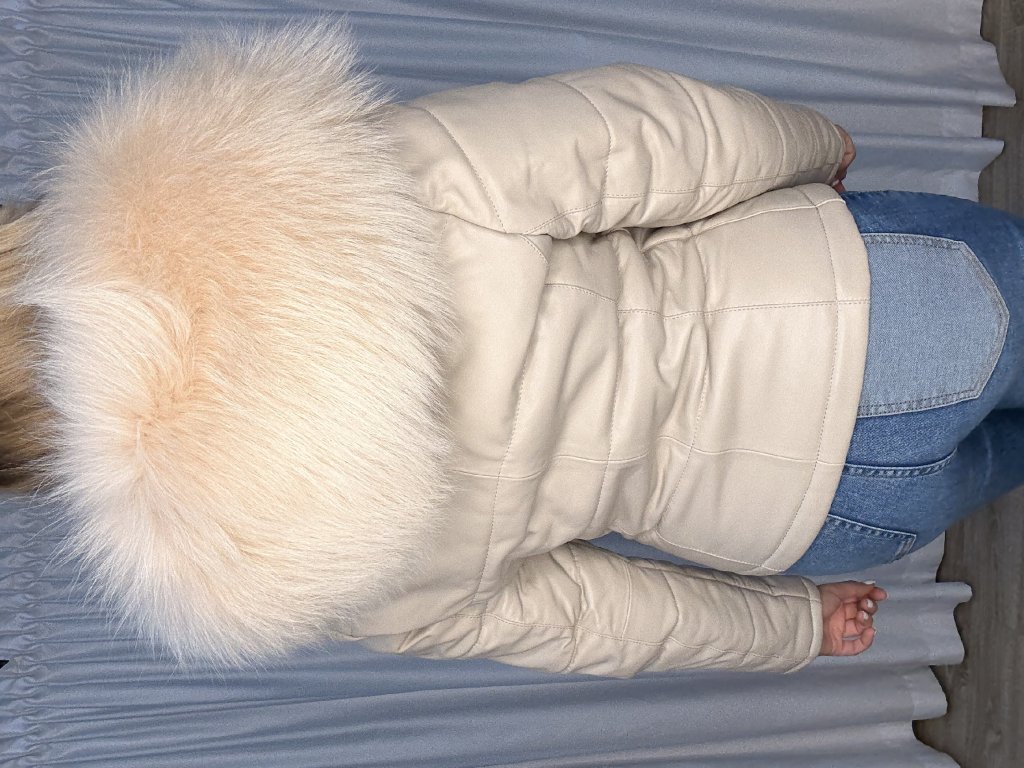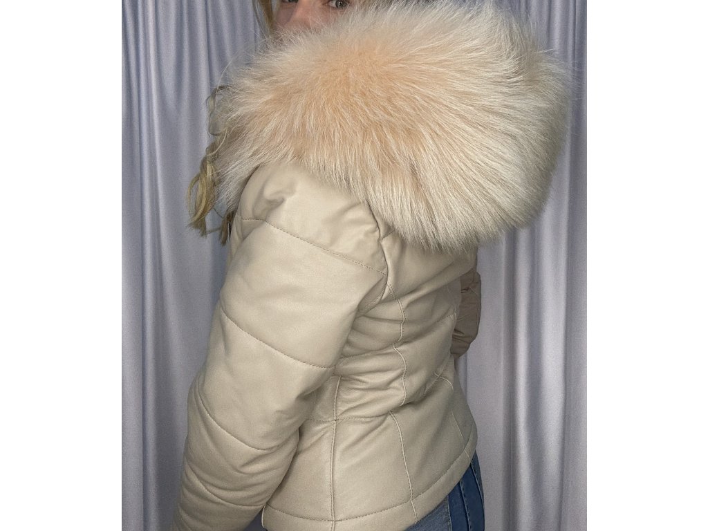 Elegantná béžová bunda z jemnej jahňacej kože so zmyselným lemovaním z pravého myvala.Štýlový kúsok, ktorý krásne tvaruje postavu a pritom zostáva ľahký a pohodlný.