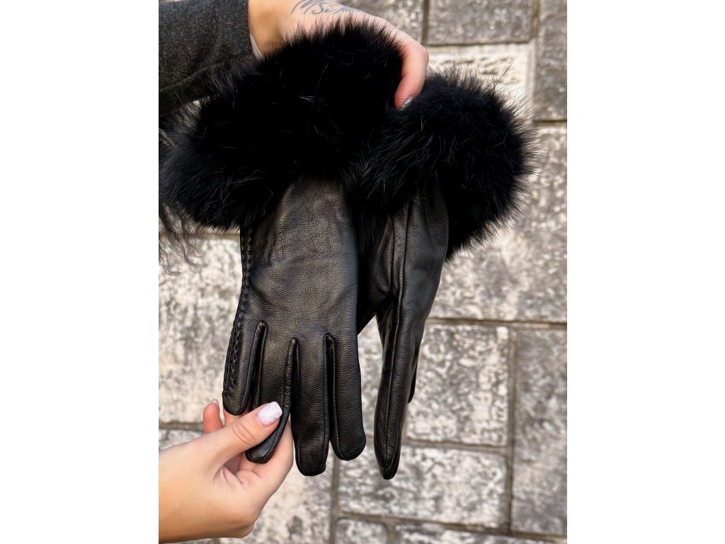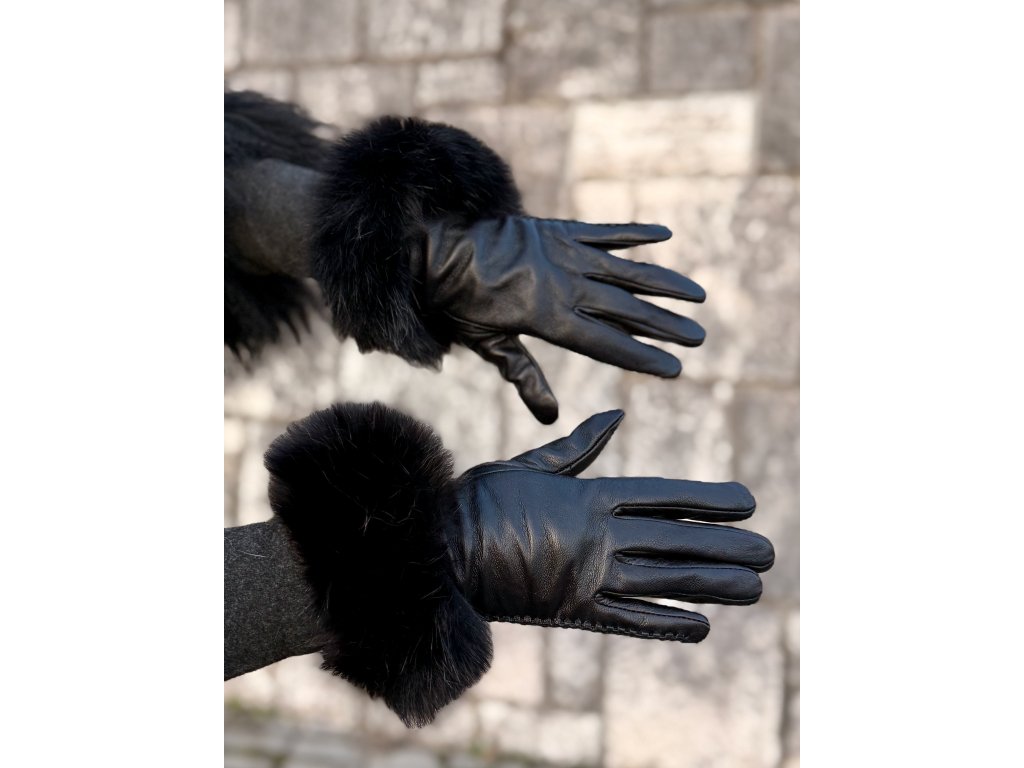 Elegantné rukavice z jemnej kože zdobené bohatou kožušinou čiernej líšky pre dokonalý luxusný vzhľad.Hrejivé, pohodlné a ideálne pre zimné dni – kombinujú nadčasový štýl s prémiovou kvalitou spracovania.