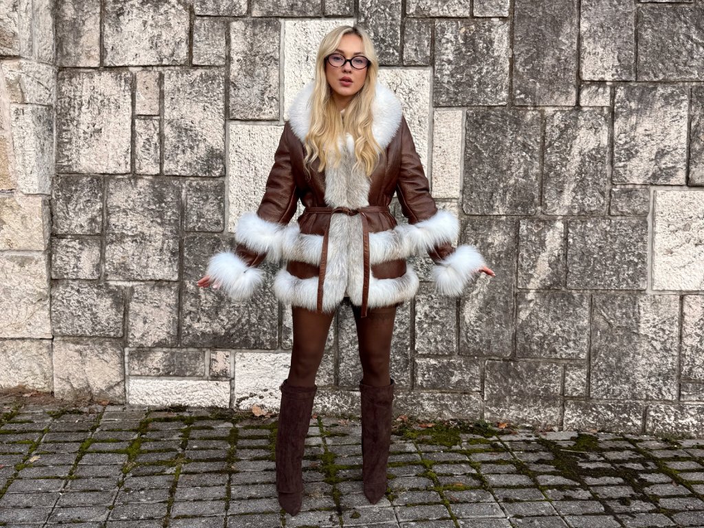 Kožuch z ovčieho rúna s líškou Shadow Golden Island Cognac