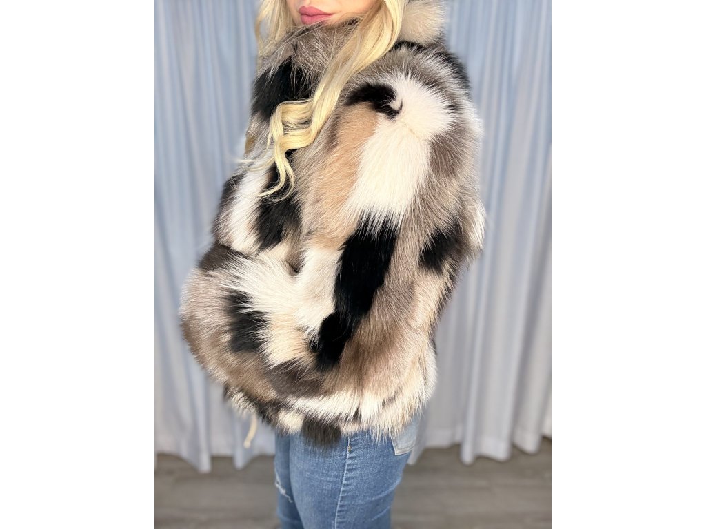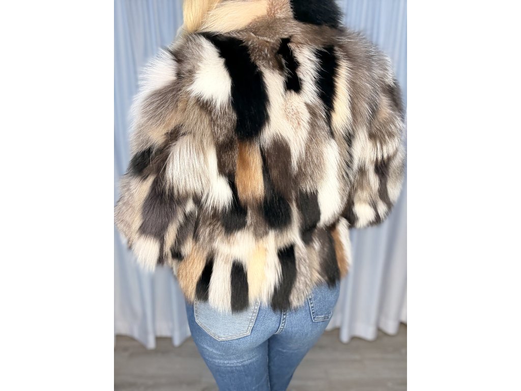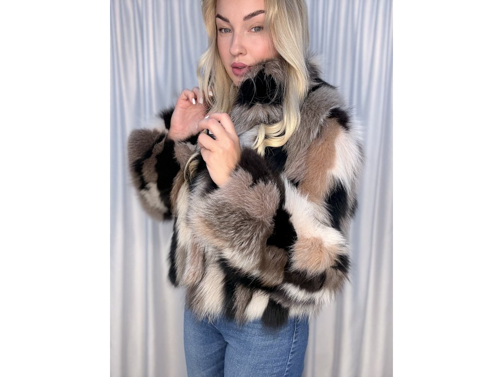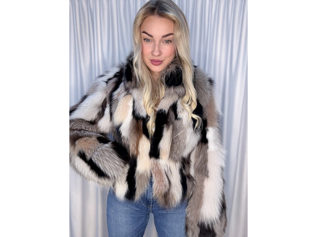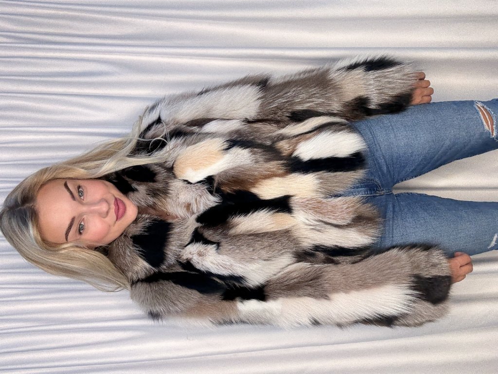 Výpredaj – posledný kus!Luxusný kožuch s výrazným patchwork vzorom z líšky. Jedinečný dizajn, ktorý spája prirodzenú krásu kožušiny s moderným strihom. Exkluzívny kúsok, ktorý okamžite pritiahne pozornosť.