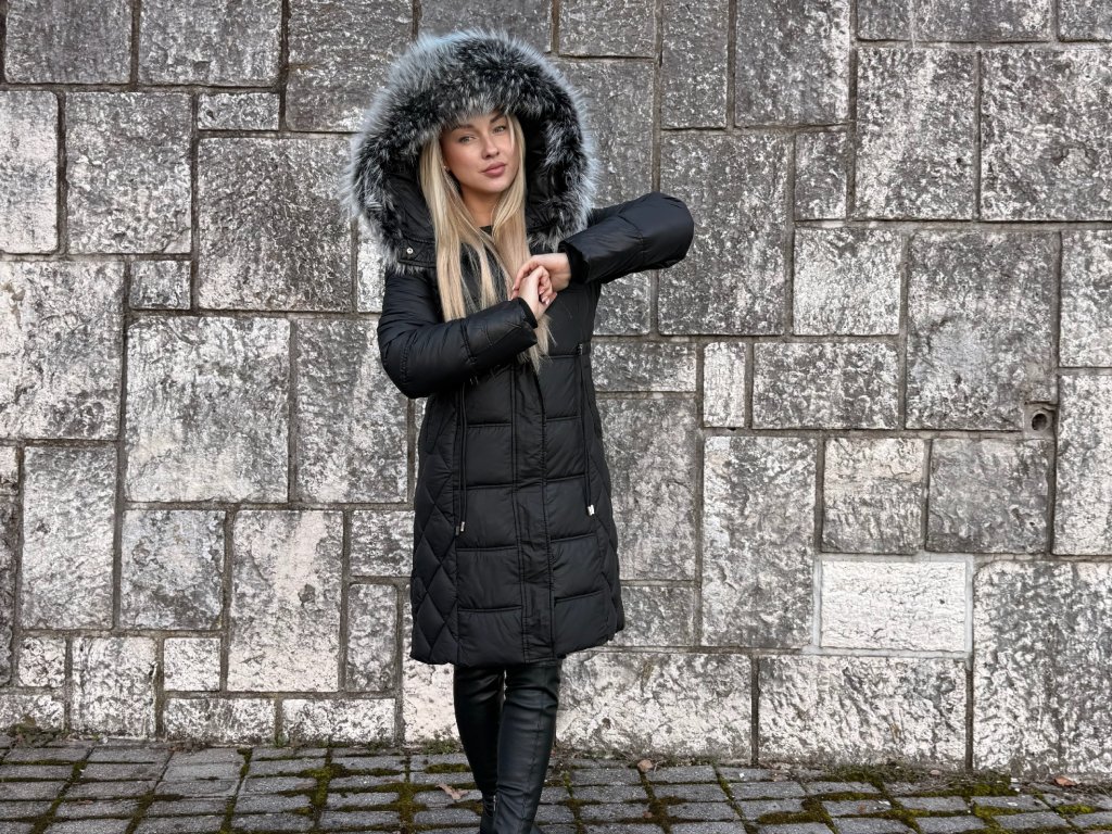 Prešívaná vatovaná bunda s mývalom Snow Top Black