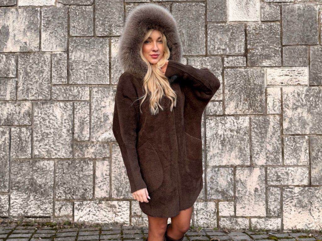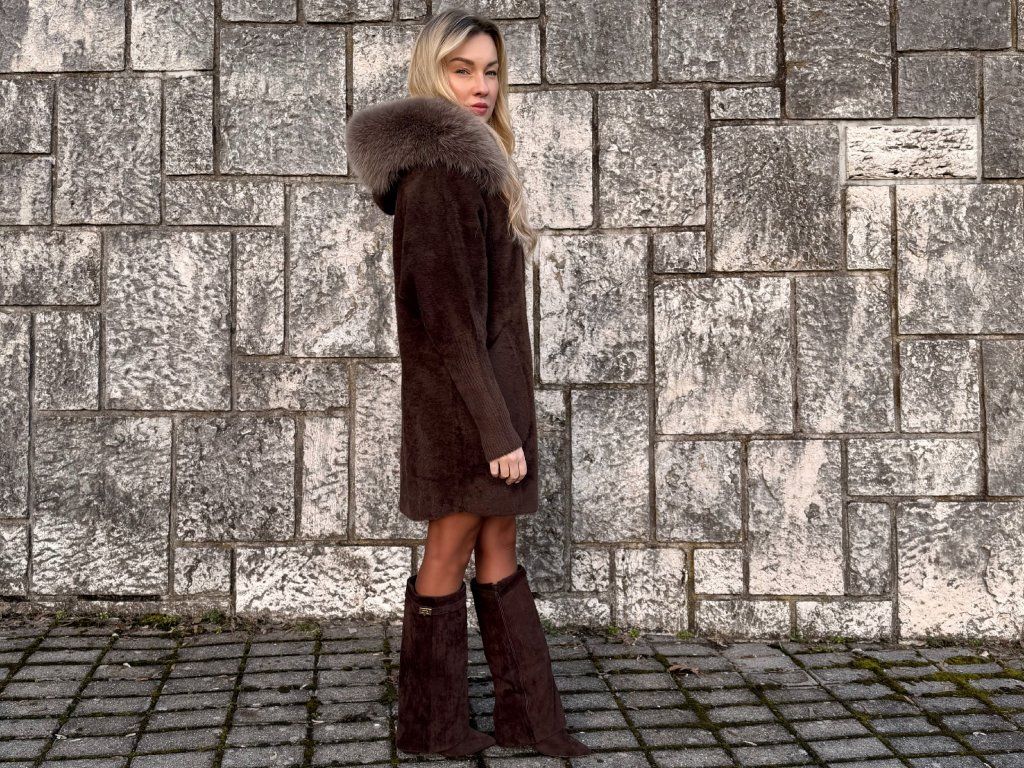 Dominantou modelu je výrazná kapucňa lemovaná pravou líškou, ktorá dodáva celému kúsku exkluzívny vzhľad a zároveň poskytuje príjemné teplo.