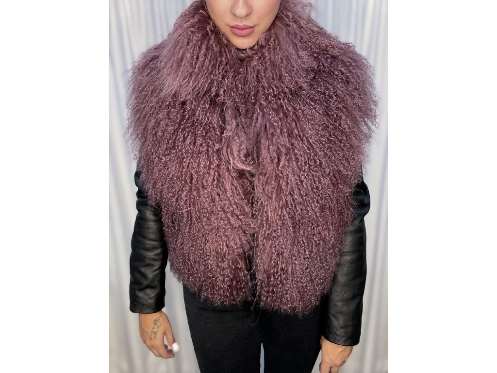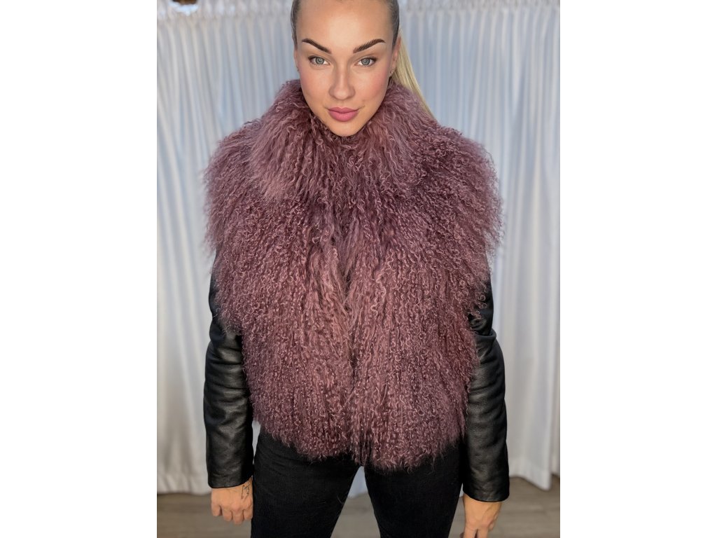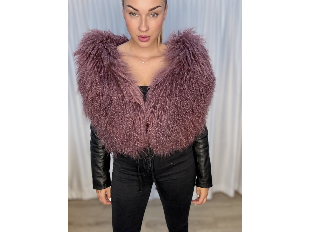 Luxusná bunda z lamy s koženými rukávmiExkluzívna bunda z pravej lamy v odtieni Velvet Berry s kontrastnými koženými rukávmi. Jemne kučeravá štruktúra kožušiny pôsobí nadýchane a elegantne, vďaka čomu je tento model skutočným unikátom v šatníku. Ideálna voľba pre štýlové a náročné ženy.